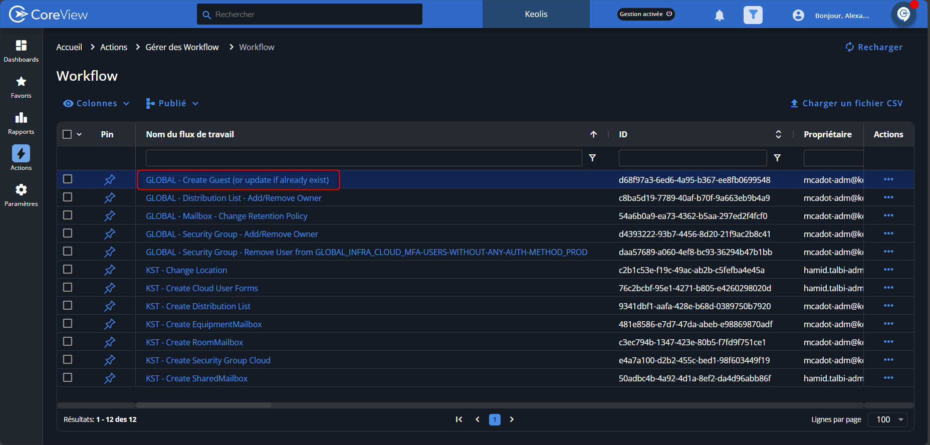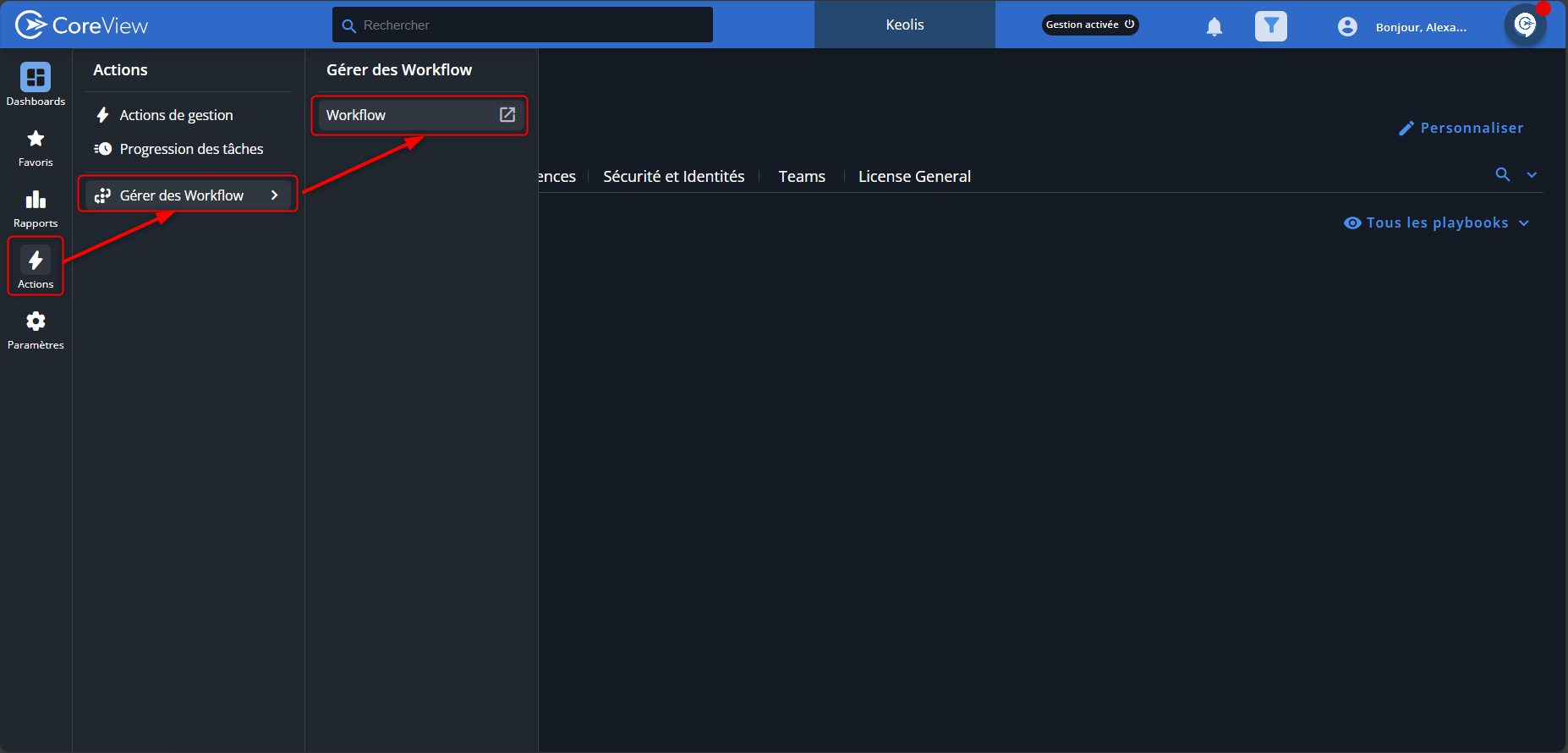 Il faut aller dans la rubrique Actions, puis utiliser le Workflow dédié :