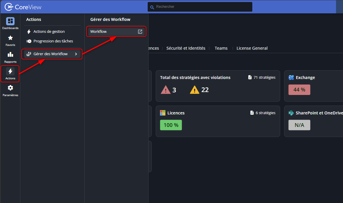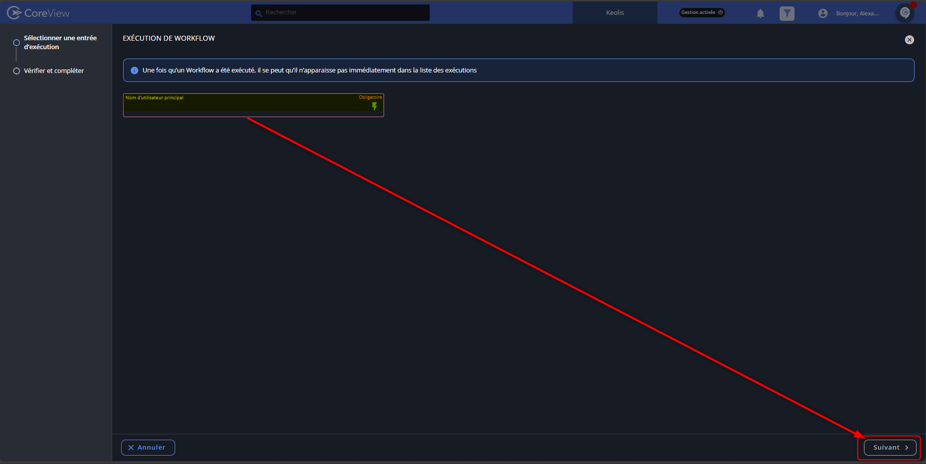Pour débloquer cet état, il faut sélectionner puis exécuter le Workflow Coreview ad hoc :