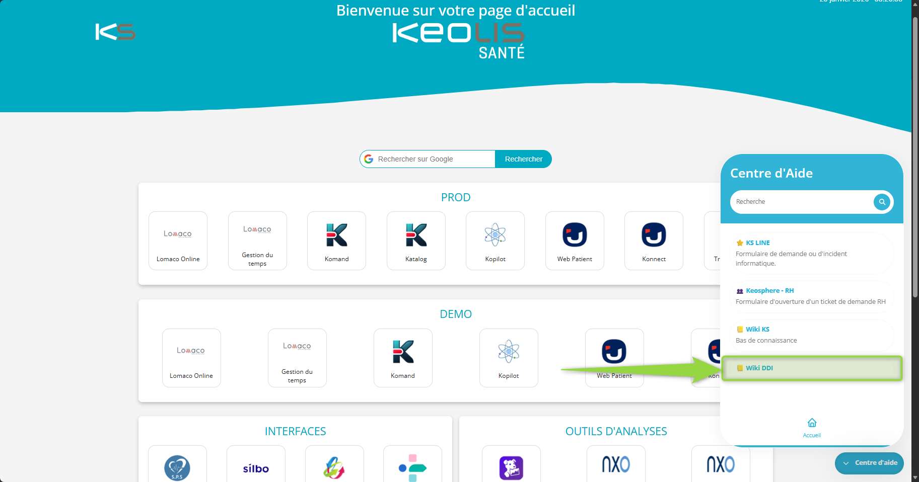 et cela depuis le centre d'aide de la page d'accueil de la Direction Digitale.
